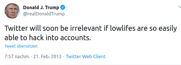 Trump twitterte bereits am 21. Februar 2013: